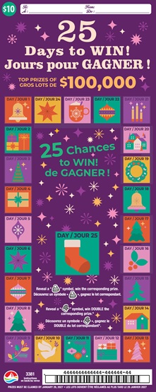 Prix disponibles : 10 $, 20 $, 30 $, 40 $, 50 $, 100 $, 150 $, 250 $, 500 $, 1 000 $, 5 000 $, 10 000 $, 25 000 $, 100 000 $